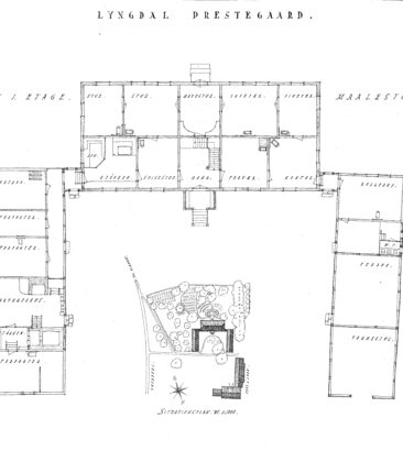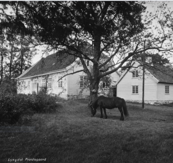 Prestegården i Lyngdal fremstår med sin hesteskoformede form, som det best bevarte eksempelet på deres modell.