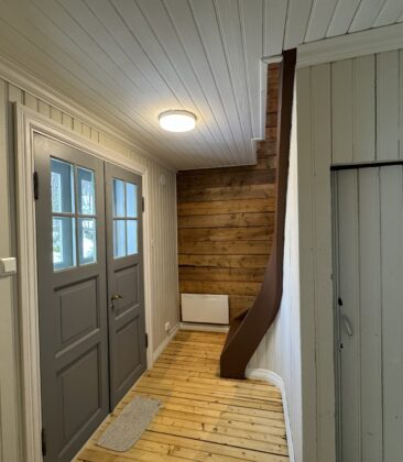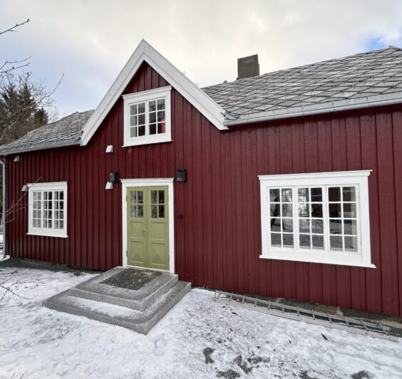 Den gamle borgstua med skifertak ble rehabilitert med moderne kjøkken, wc, og vaskerom i 2024