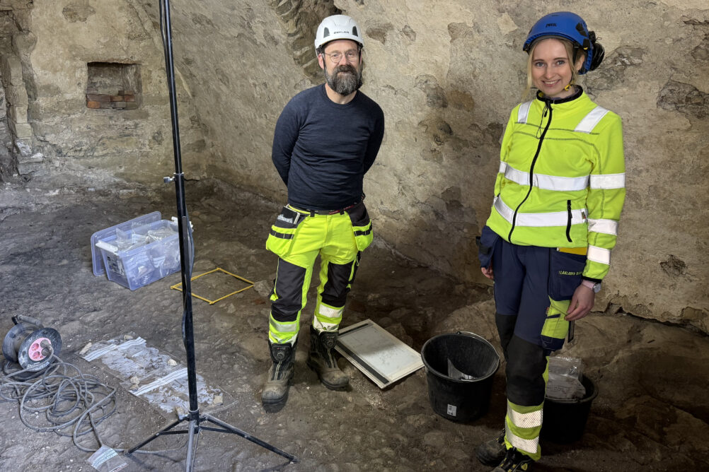 Sammen med kollega og arkeolog, Egil Vrålstad Brodshaug står hun under det buede steinhvelvet og viser frem noen av funnene. Bare noen uker tilbake var gulvet dekket med 10 cm potetjord. Nå står de på et kuppelgulv fra rundt 1300. Kuppelgulv kjennetegnes ved at naturlig avrundede steiner er lagt tett sammen slik at de danner et dekke med «små kupler».