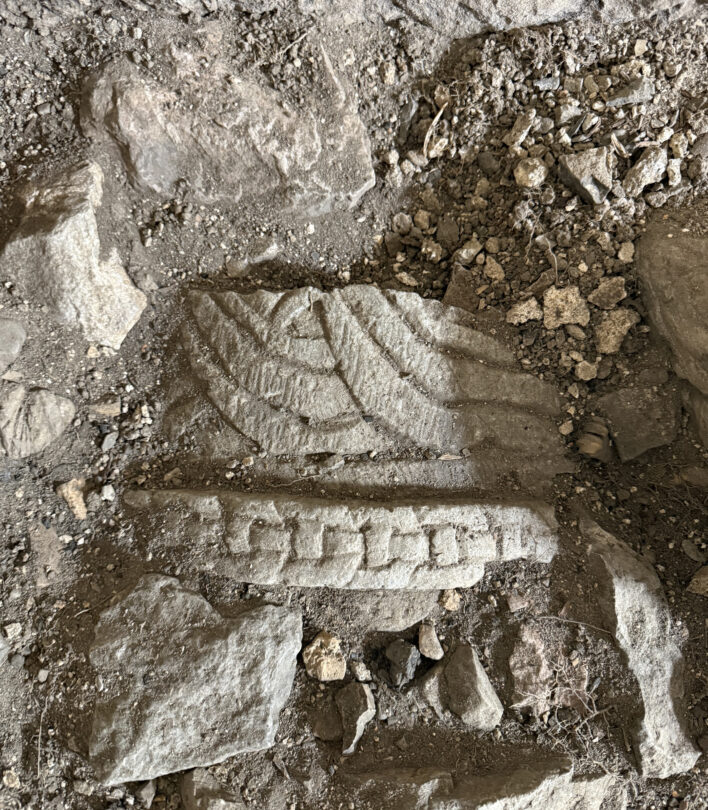 – Da vi gravde dukket det opp steinornamentikk i en kleberstein to steder i kjellergulvet, så vi lurer på om det har tilhørt en gammel døpefont, forteller Røsseng.